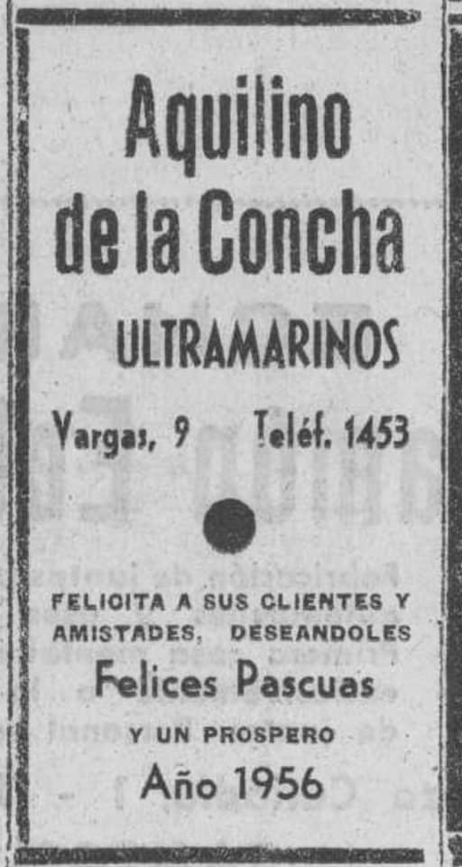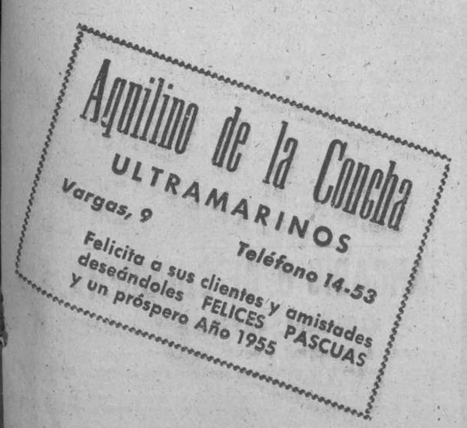 Hemos indagado más y encontramos en 1953 a Los ULTRAMARINOS AQUILINO CONCHA, funcionando en su local de la calle Vargas. Asimismo, a finales de 1954 y 1955, felicitando a sus clientes los nuevos años 1955 y 1956 ( ver en Comentarios), y en 1966, demostrando toda una trayectoria laboral en Cádiz y Santander.