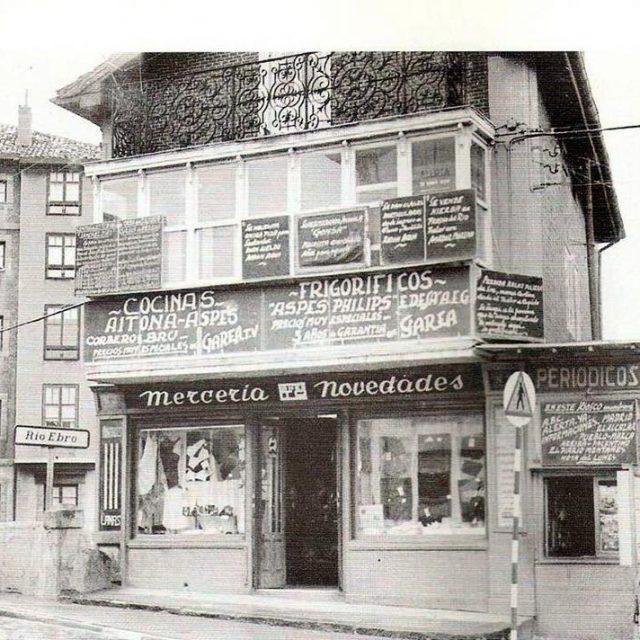 El rótulo en cuestión de Reinosa es el de la Mercería Ernesto Novedades (Avda. Puente Carlos III). No tenemos datos concretos, pero gracias a esta linea abierta podemos intuir que estamos hablando de los años 50. En técnica de ácido, vemos una tipo script y lo más curioso y que da un toque moderno es la composición geométrica de Ernesto. Esto recuerda también a la palabra confitería de Máximo Gómez en el Paseo Pereda de Santander.